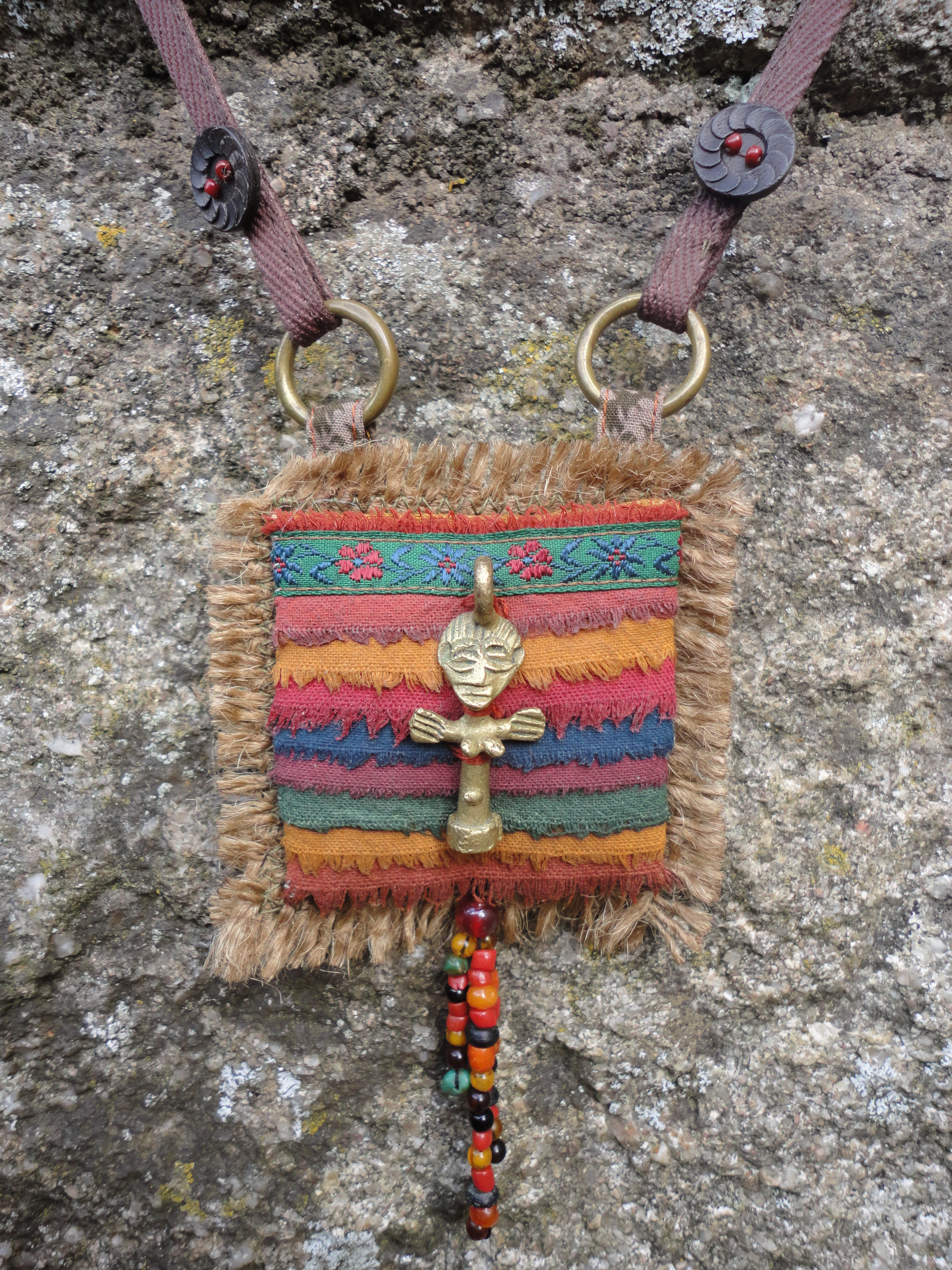 Tissus coton, lin, chanvre, parfois recyclés, au départ blanc puis peints et imprimés au pochoir.